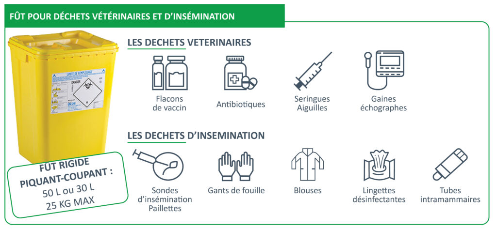 La gestion des déchets d’inséminations, échographies & vétérinaires est une problématique soulevée par les éleveurs porcins, bovins et avicoles.